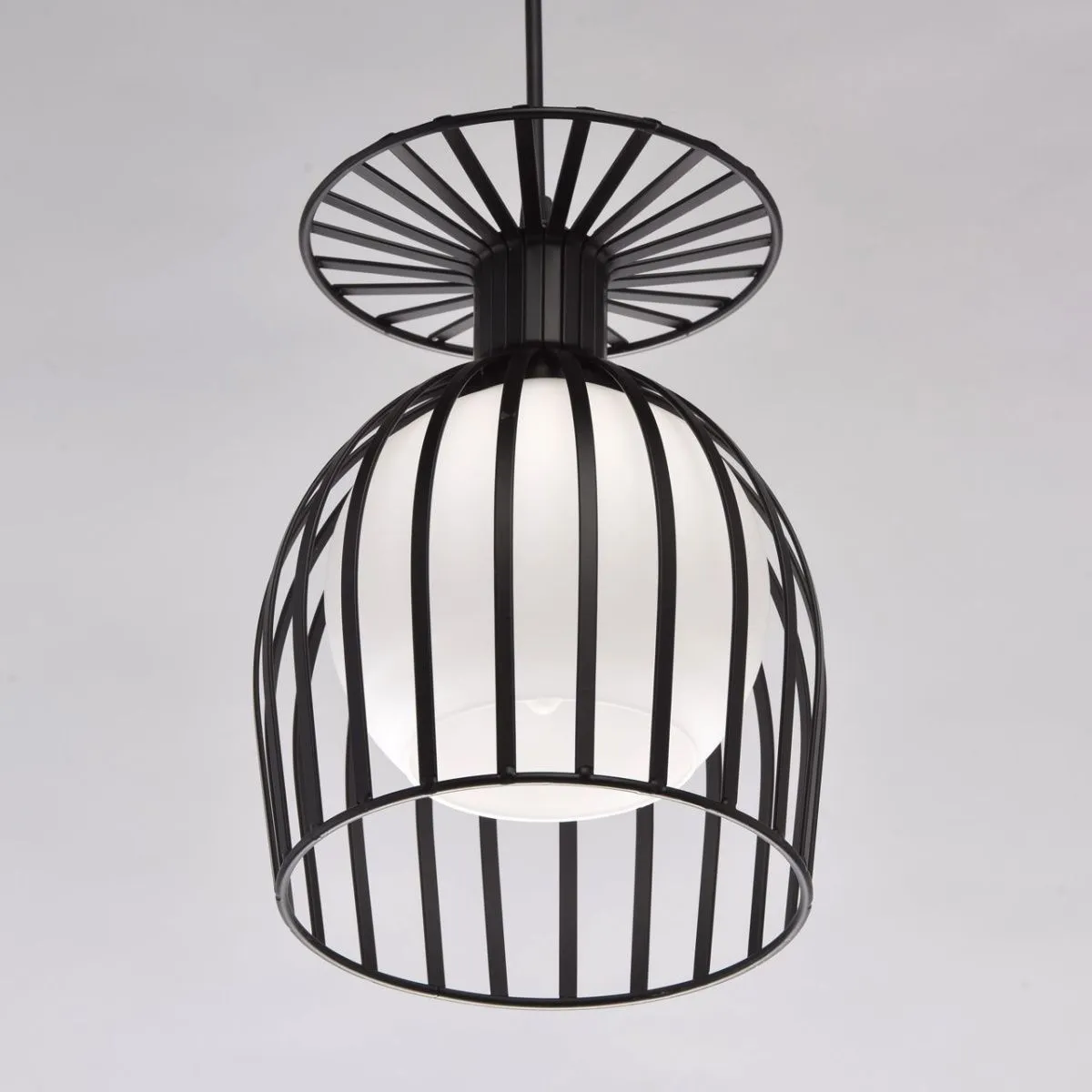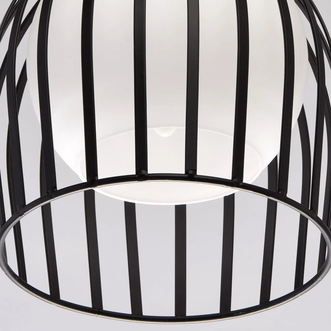 Металлическое основание черного цвета. Плафон: белое матовое стекло.