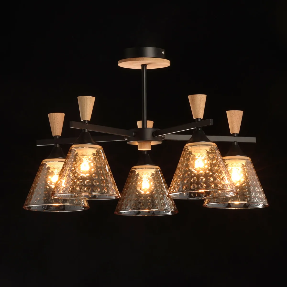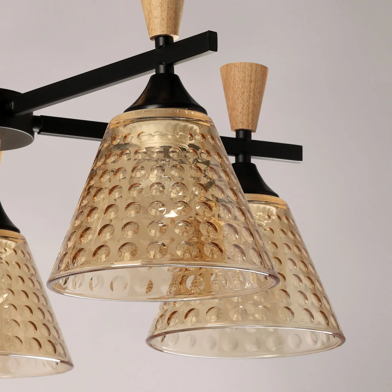 Основание/ металл/ черный Плафон/ стекло/ шампань Декор/ дерево/ натуральное