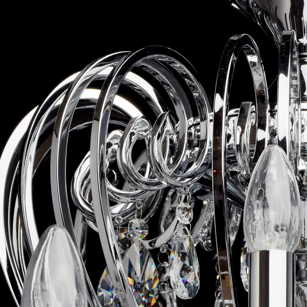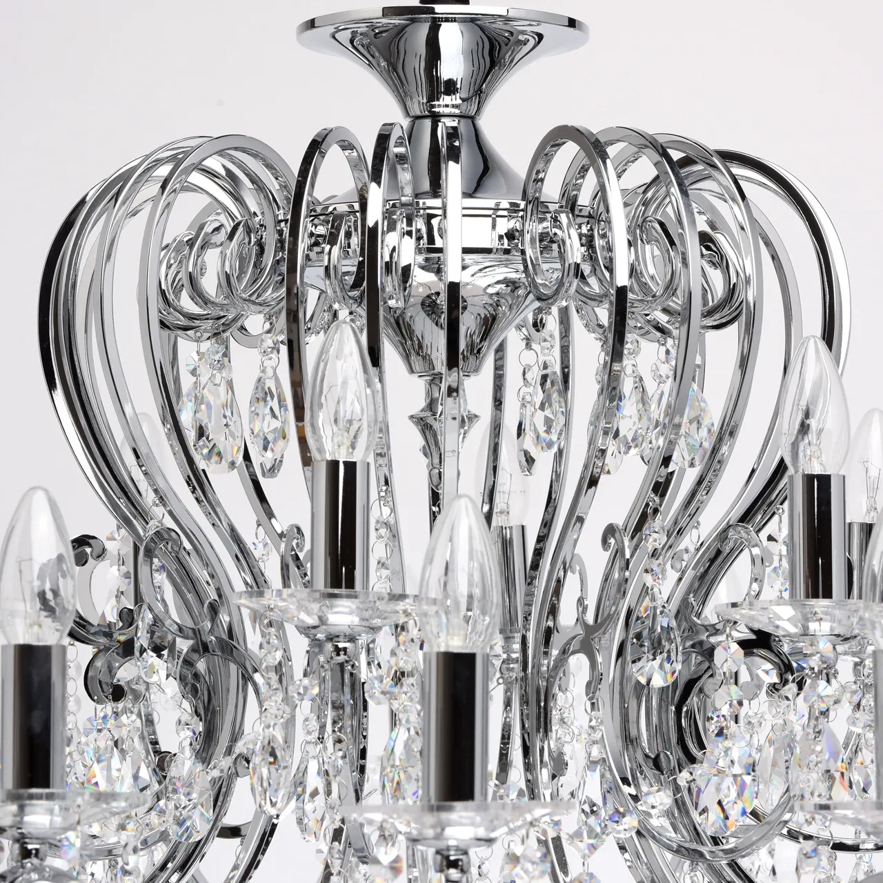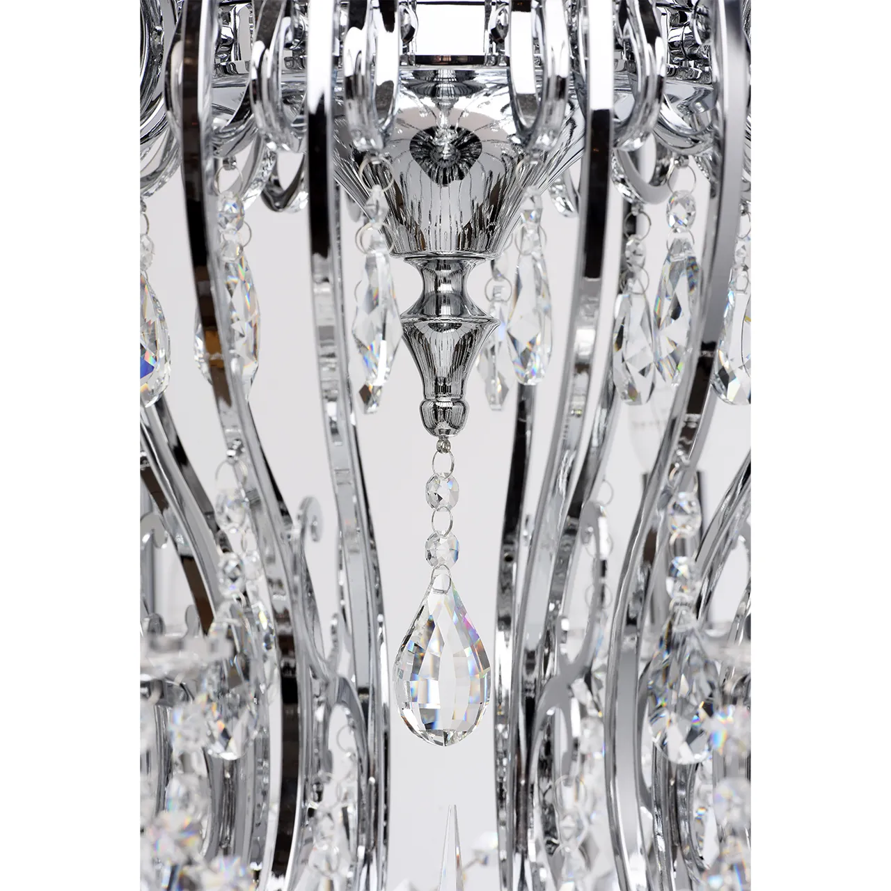 Металлическое основание цвета хрома, декоративные подвески из хрусталя