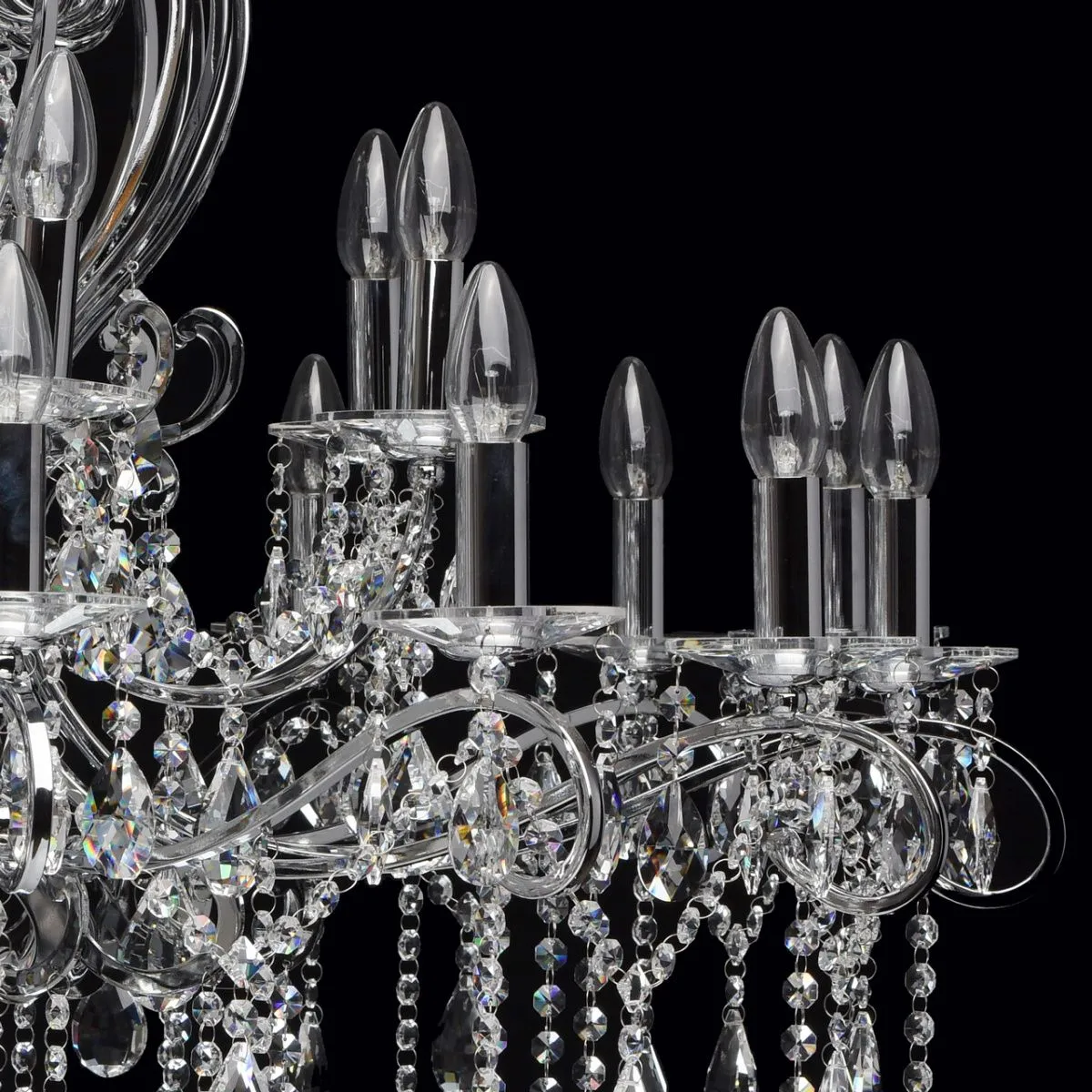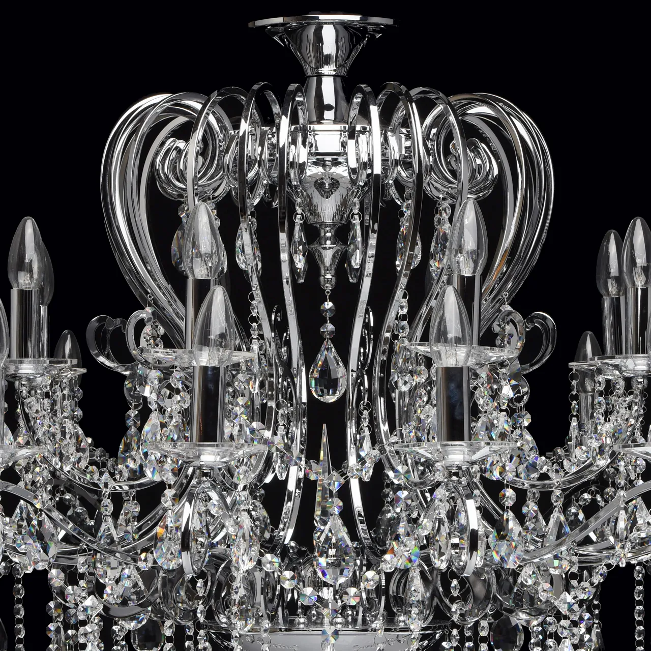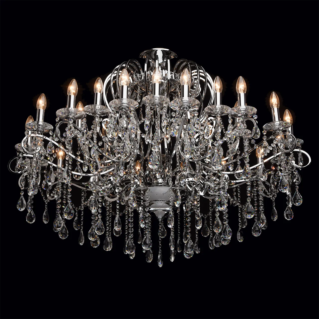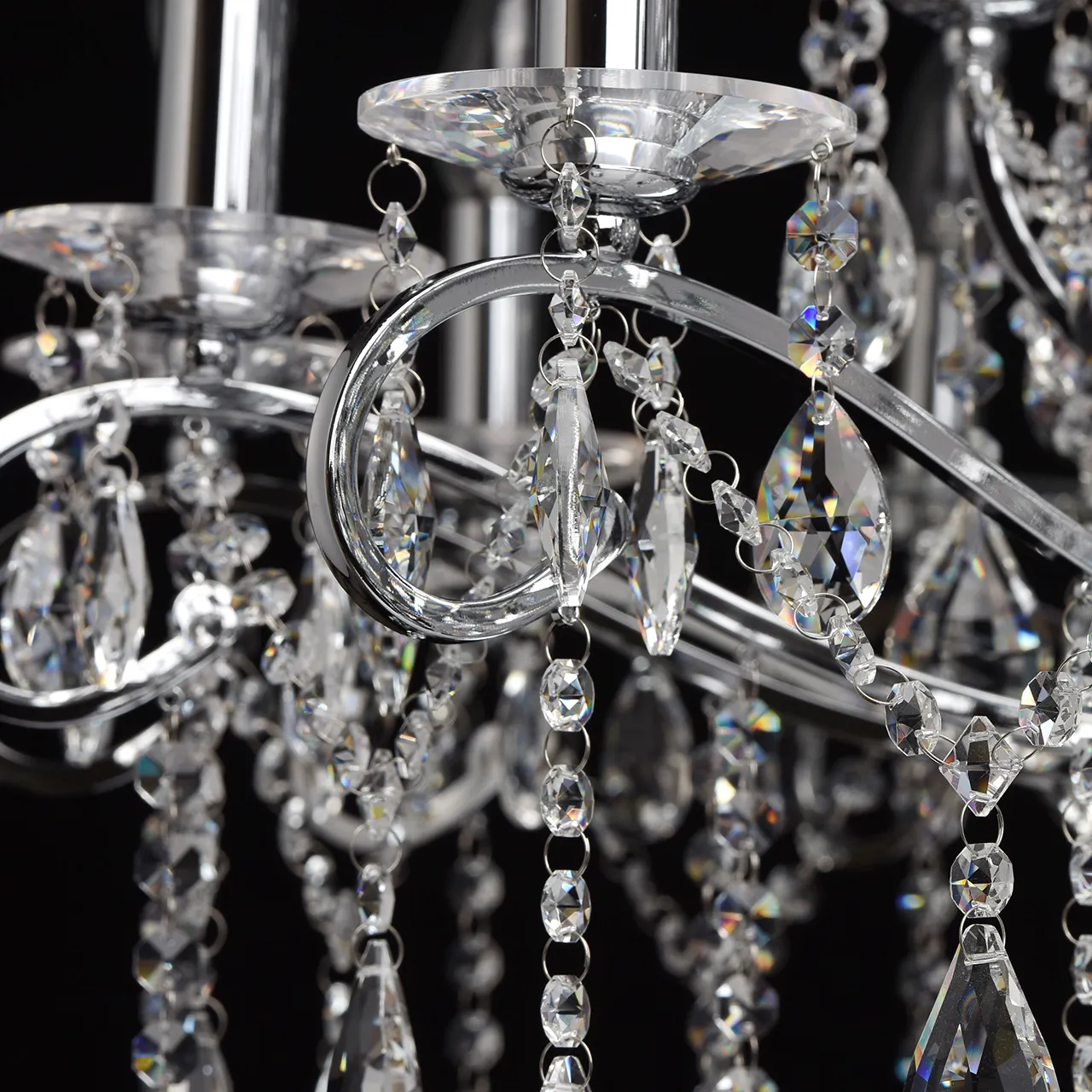 Металлическое основание цвета хрома, декоративные подвески из хрусталя