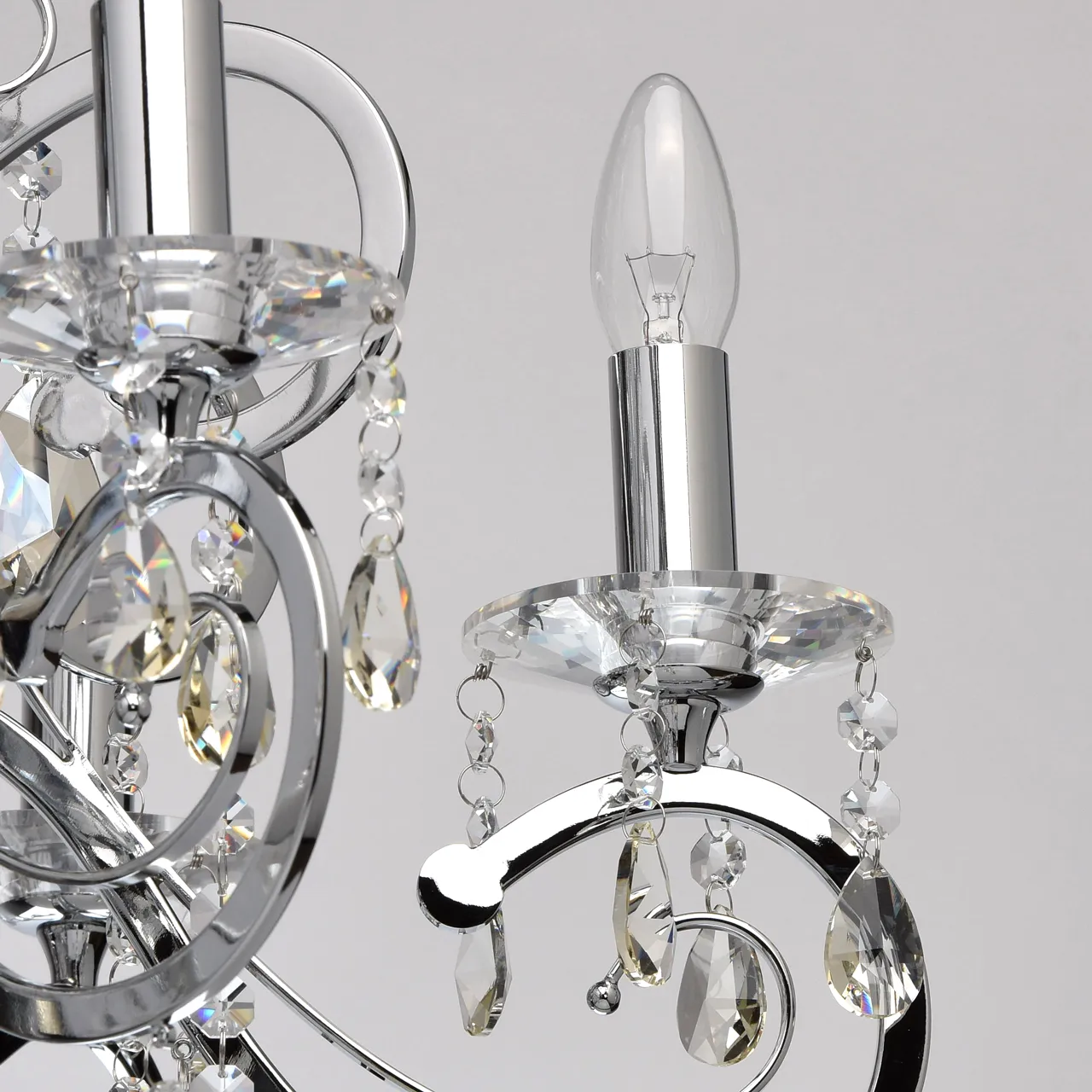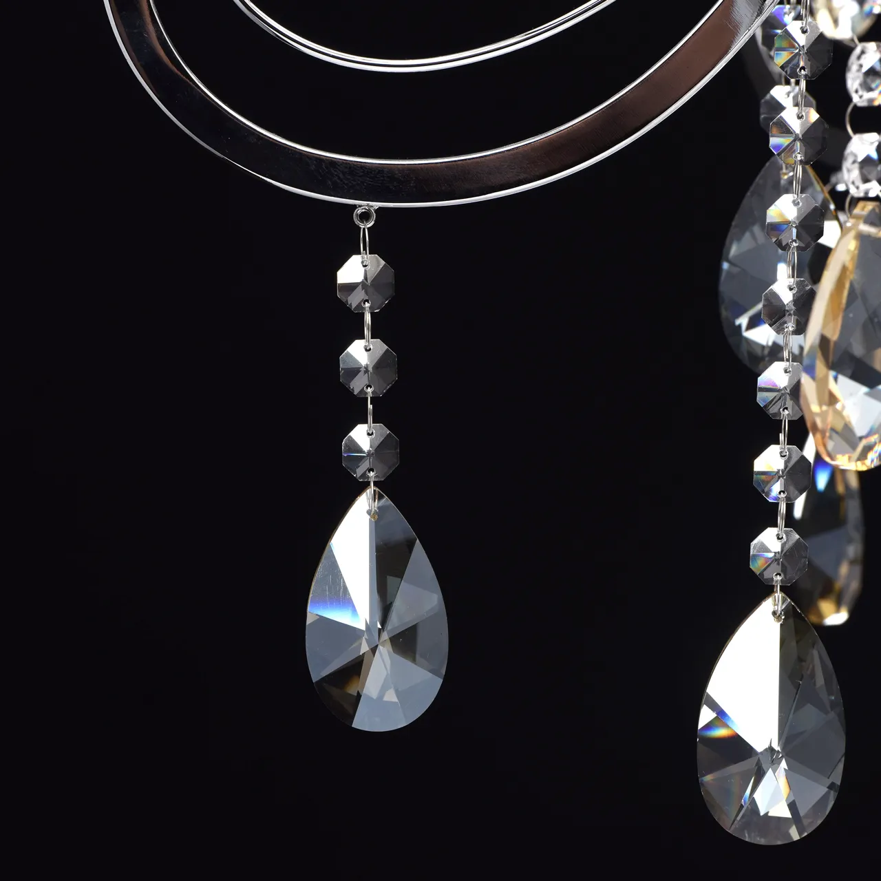 Металлическое основание цвета хрома, декоративные подвески из хрусталя