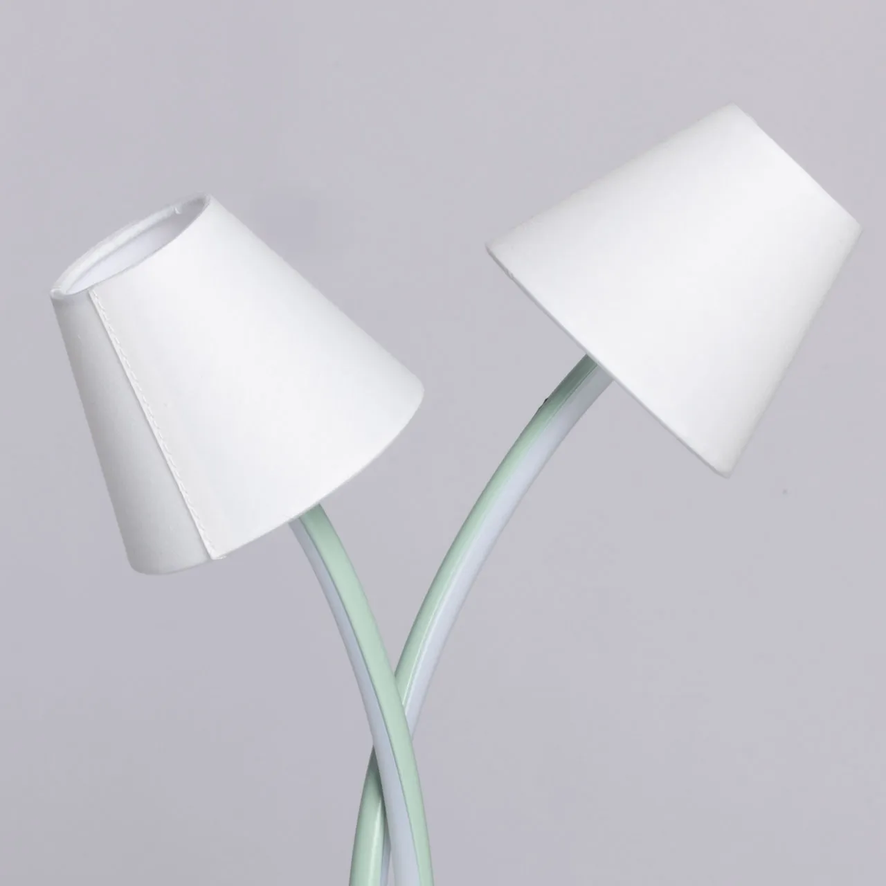 Основание/ металл/ зеленый Плафон/ сплав алюминия, силикон/ зеленый, белый Абажур/ текстиль, акрил