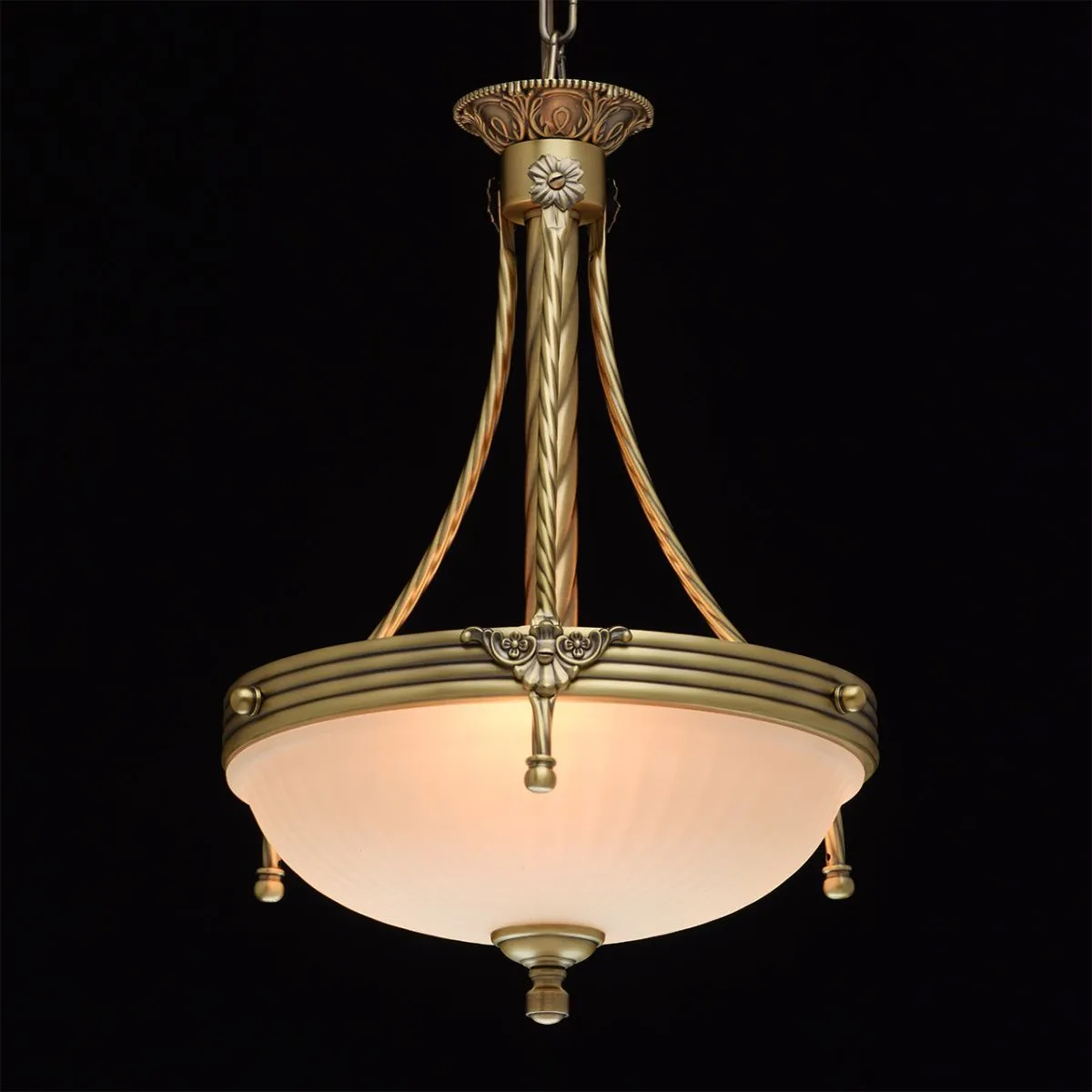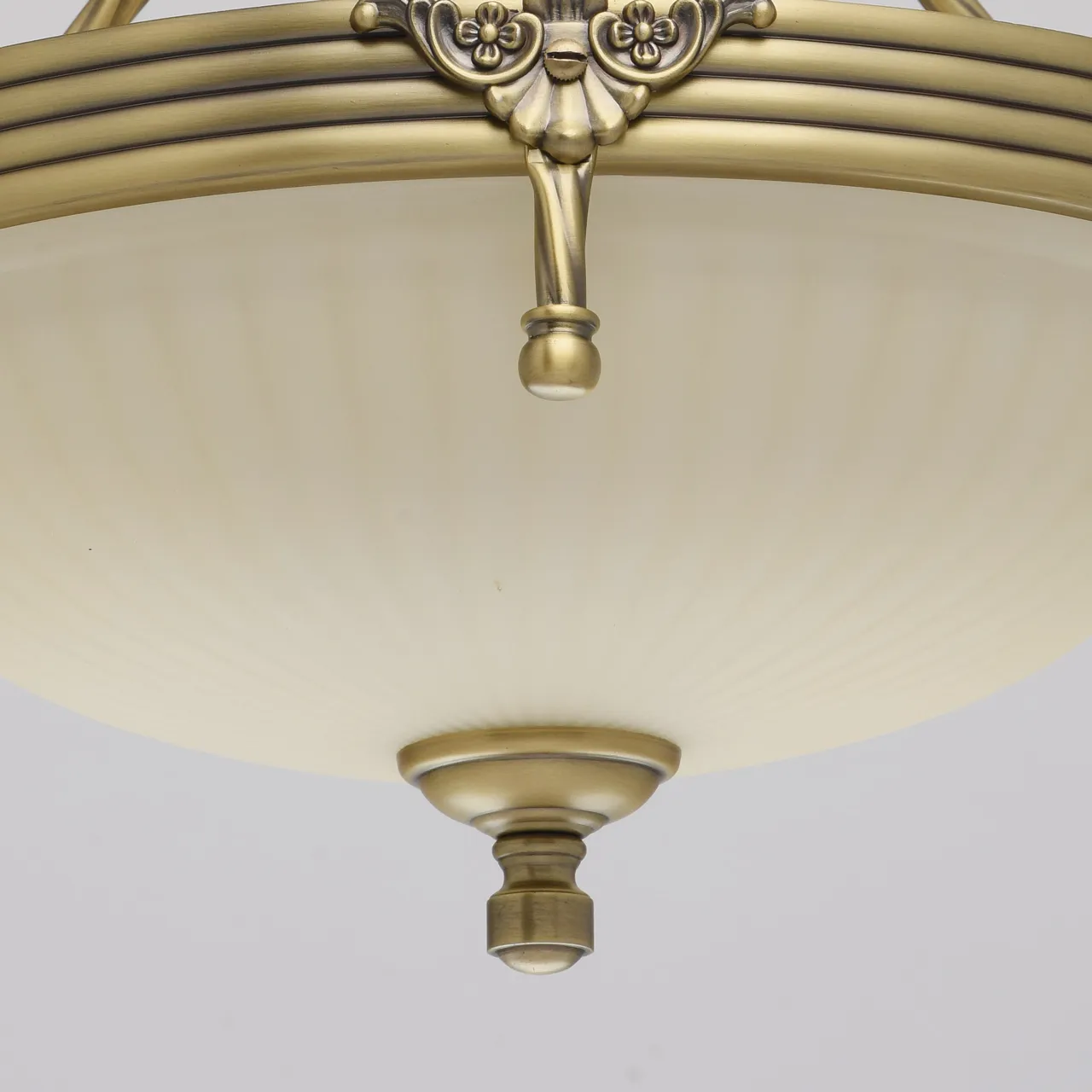 Алюминиевое основание цвета античной бронзы, стеклянный плафон цвета ванили.