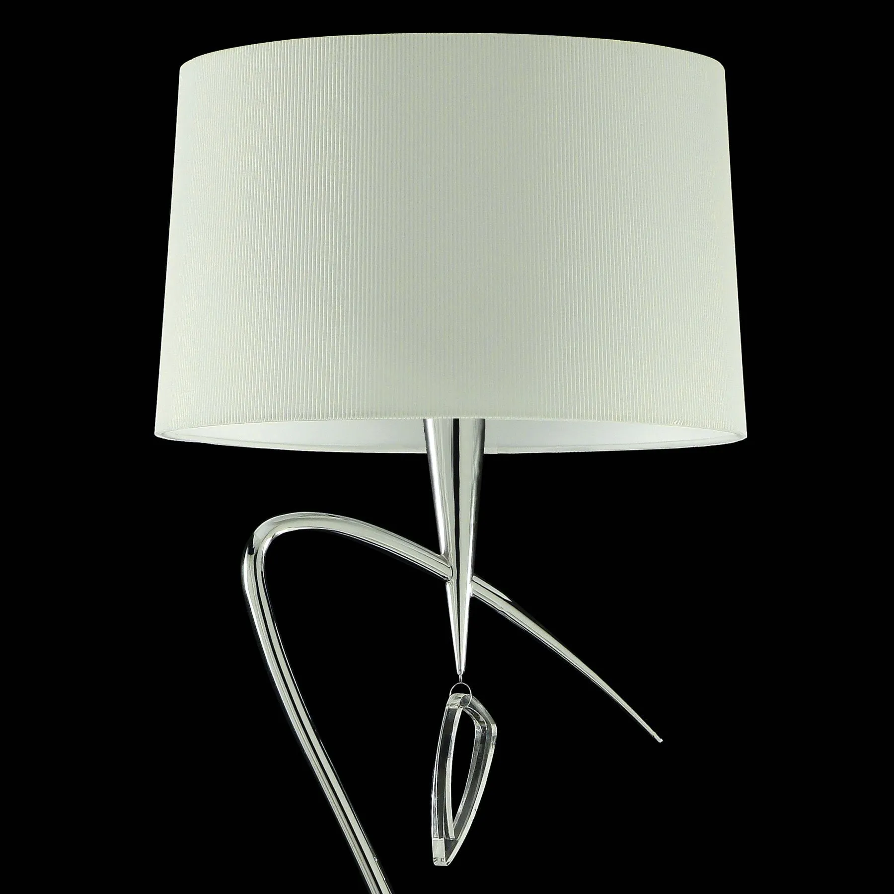 коллекция имеет яркую отполированную хромированную или латунную отделку. Металлическая конструкция сочетается с белыми оттенками плиссированных тканей абажура, создавая индивидуальные решения для вашего интерьера.